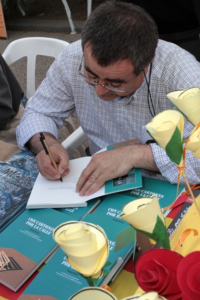 Ya marchó St Jordi. Pasó la presentación y volvemos al día día. Me gustó eso de firmar el libro. Estuve en el stand de Arrels, en la Rambla del Raval. Se vendieron más de ¡70 libros!, me dicen. Yo firmé algunos, no tantos como 70, no estuve todo el día, pero fueron bastantes. Me senté junto a Miguel Fuster y sus cómics. Él es famoso. Ya sabéis…, Miguel, el de los «15 años de calle». Es un buen dibujante y pintor. Su firma era larga, pues a cada uno le hacía su propio autorretrato, el de Miguel, y así consiguió colas esperando su firma. La gente quedaba encantada. Yo era más rápido, sólo tenía que pensar una frase que pudiese agradar al que compraba el libro. Es curioso ver a la gente desde el otro lado, sentado, siendo el protagonista de muchas miradas, haciéndote el importante… Por la mañana había pasado por las Ramblas, estaba a tope. Había colas y colas para recibir la firma de escritores… Muchos eran caras conocidas. Acompañó el día, lleno de sol.